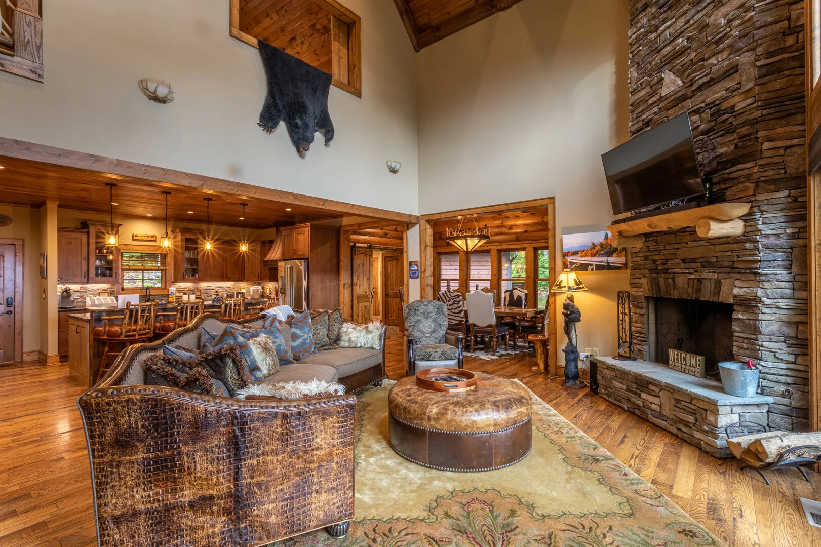 Once you pass through the towering cedar gates into Eagles Nest, you sense immediately you have arrived somewhere very special. The attention to detail throughout this luxurious private gated community is obvious wherever you look, from the hand-stacked stone walls to the paved road meandering past boulders and overlooking amazing vistas. Just after passing the popular Great Camp area, you will arrive at Eagles Landing – nestled in the trees yet still offering wonderful mountain views from the decks.